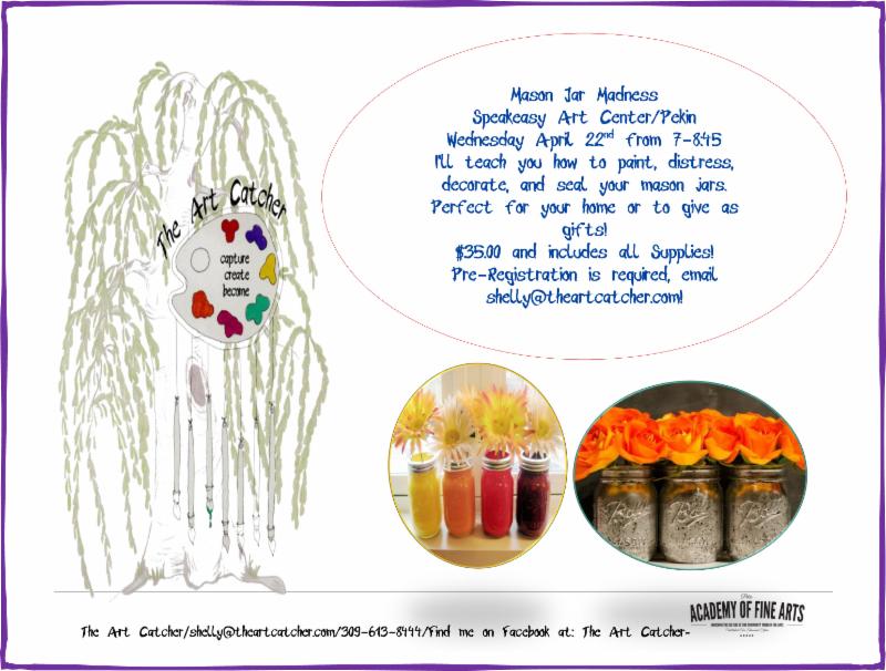 Mason Jar Madness on April 22nd. Learn to decorate and distress Mason Jars to make creative vases and containers. These would make great Mothers Day gifts. Sign up now and bring a friend!